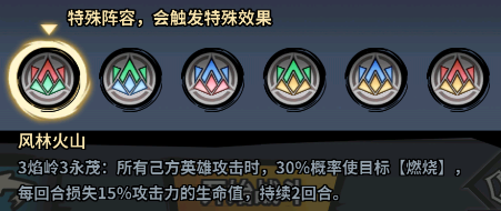 在战斗的第三回合自动发动,提升自身30%攻击力和15%暴击率,持续4回合。