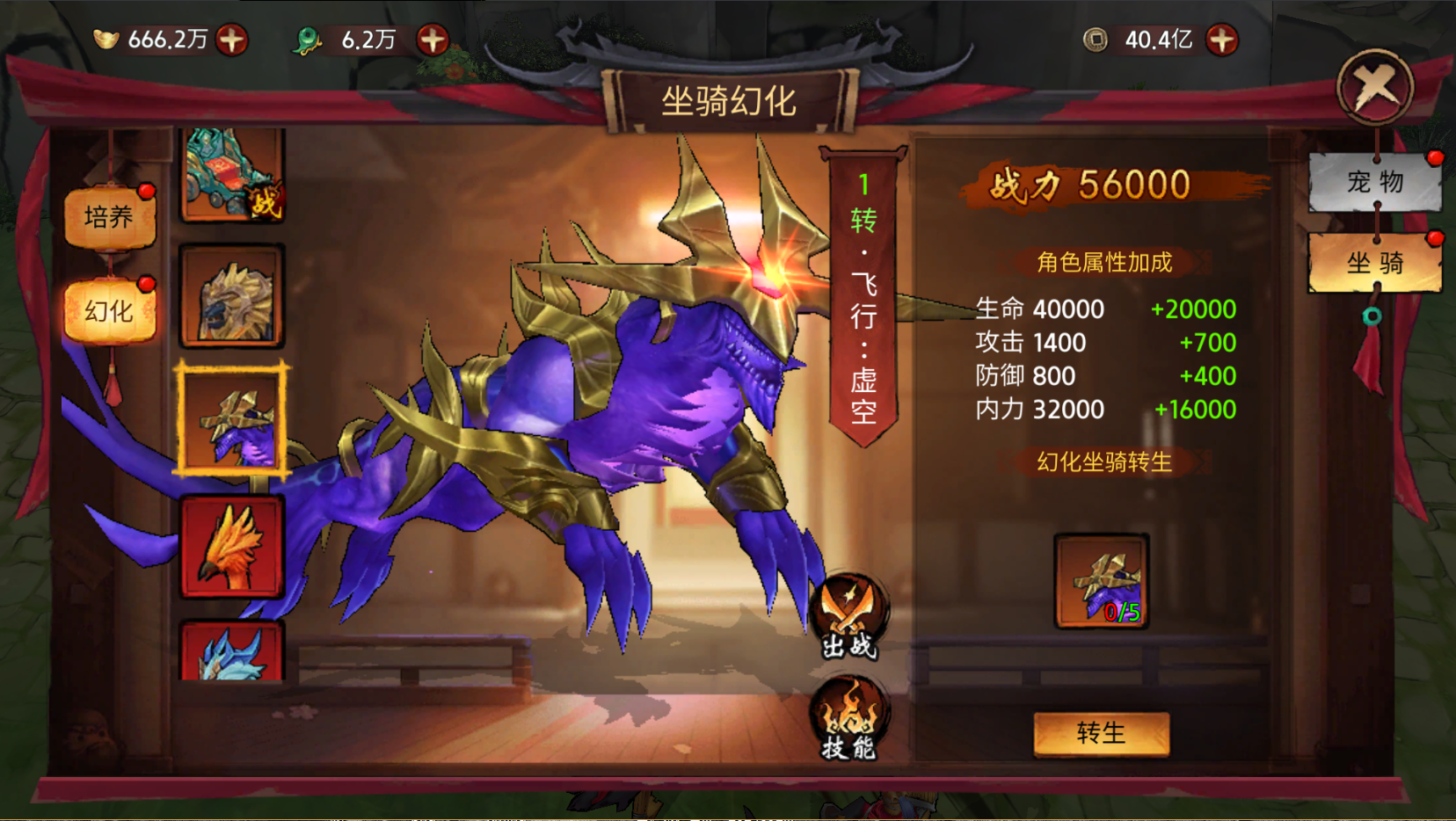 虚空作为苍龙劫中的顶级坐骑之一,不仅拥有强大的技能效果,还能为骑乘者提供全面的属性加成。
