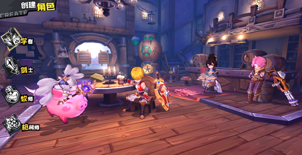 进入选角界面,四种角色在场景中百无聊赖的呆着,等待着我的选择。枪械师看起来是个挺有特色的职业,但是左边的萌妹子更加的吸引我,哦,原来她是牧师~那就选择牧师作为我的职业吧~