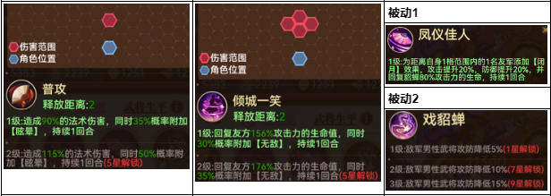 根据原型游戏内定位辅助型,武将初始资质为20,为红将英雄,擅长使扇,喜好奇物、书籍(主公游戏中送礼后会相应加成以及随机收到武将回复的小惊喜哦~)
