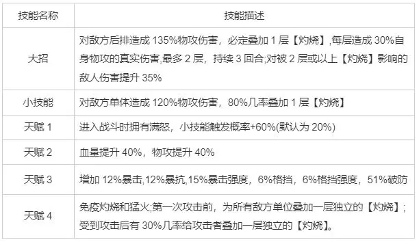 灼魂金乌是火系SSR精灵,擅长通过灼烧效果造成持续伤害。它的大招和小技能都能叠加灼烧,对抗灼烧效果堆叠的敌人时伤害加成显著。天赋赋予其在战斗伊始即刻释放技能的能力,并显著提高物理攻击力和生命值,同时额外增强暴击相关属性,使其成为战场上的持续威胁。免疫灼烧效果并能主动给敌方单位叠加灼烧,进一步增强了其战场输出能力。