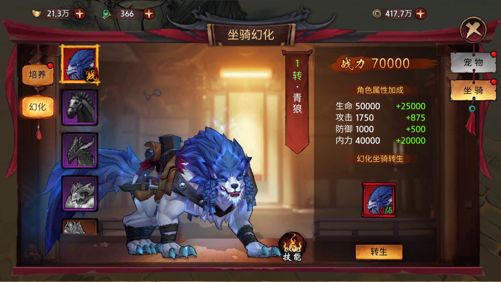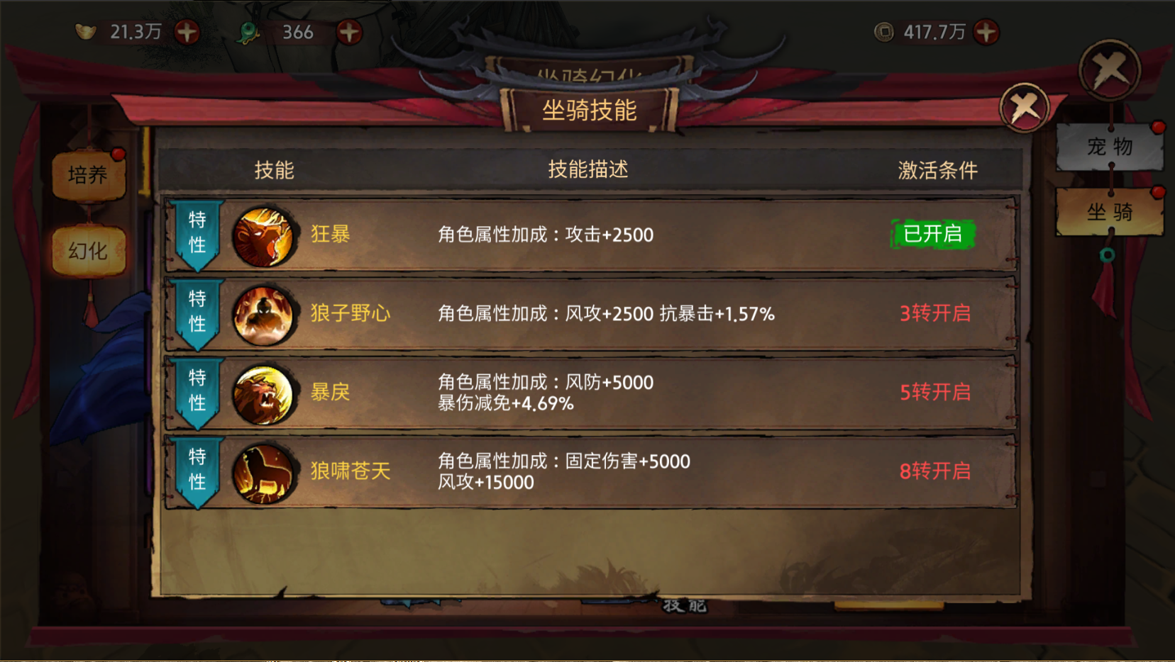 青狼赋予主人强大的风属性力量,使风系技能威力倍增,成为战场上不可忽视的存在。