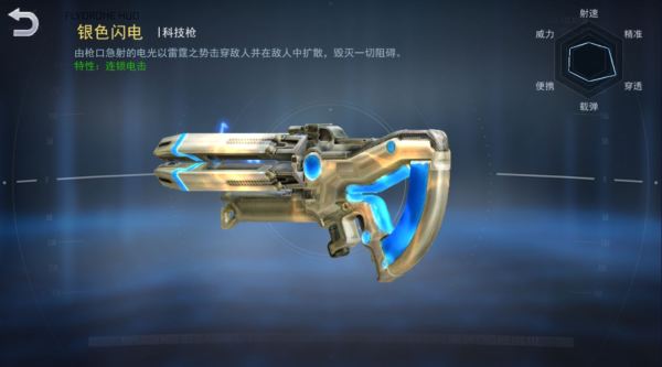 接着介绍两把科技枪,第一个银色闪电,其射出的电流能够在多个敌人之间快速传递,对多个敌人造成大量伤害,是刷连杀以及清理小怪的绝佳神器。