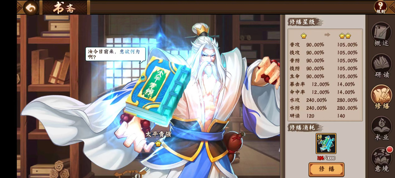 从水攻计算公式可以看出,天书升星带来的元素属性加成是最大的,各位主公也可以针对性的在这块多下功夫。