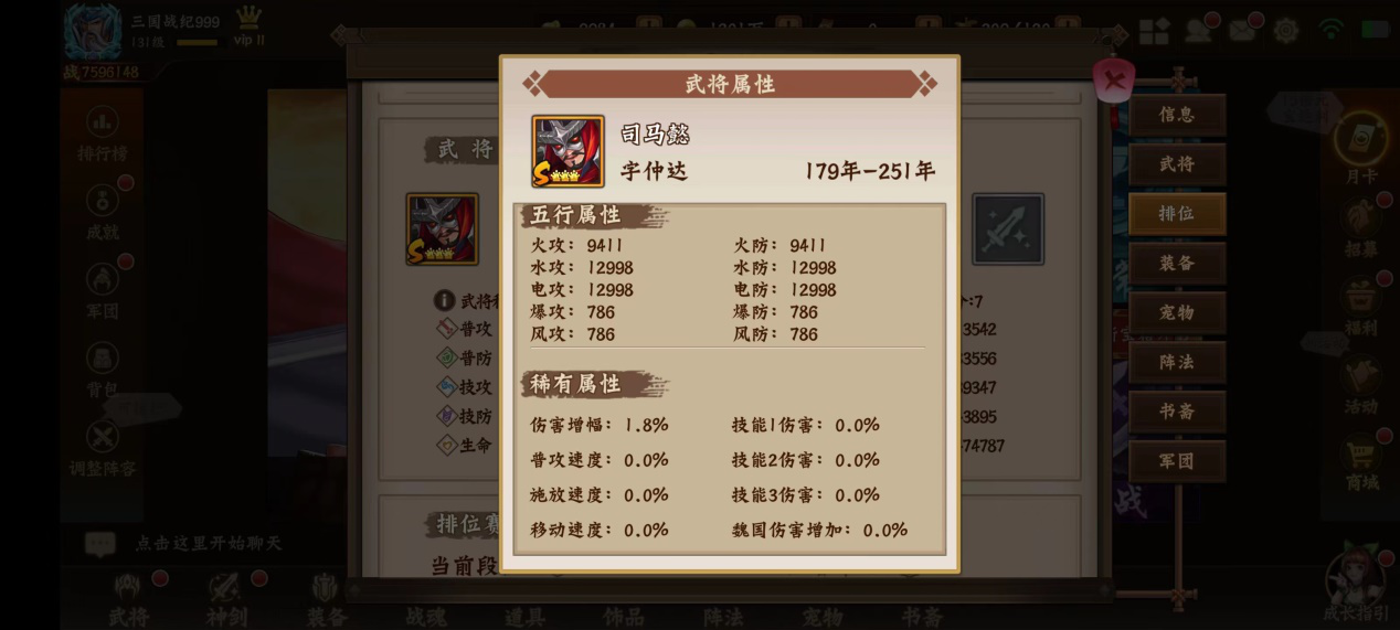 以下图中司马懿面板的水攻12998为例,其组成为: