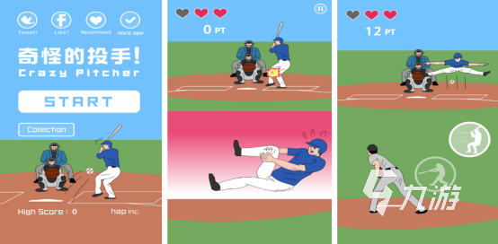 棒球为主要题材,清新的游戏画面,操作方式极其简单,屏幕上都有具体的控制按键,比如有挥球或者是发射等等,主要的任务就是通过精准瞄准的方式,看准对方投出的球,在逼真的游戏画面中,要立即做出相应的判断,屏幕上都会有两个相应的按钮,比如右上角可做出回避,而左下角却可将球打出去。