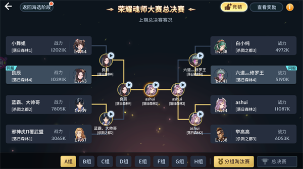 通过海选阶段后会进入淘汰赛阶段,一共分为ABCDEFGH八个组。需要注意的是,大斗魂场是跨服战斗的,所以千万不要只盯着本服的高战力玩家研究。否则可能会在他服玩家手里栽个跟斗。
