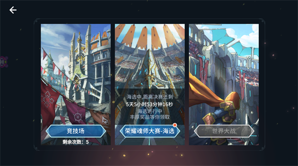 进阶竞技场玩法,分为海选和决赛阶段。奖励对比竞技场更加丰厚,当然也需要更强大的实力才能够晋级。