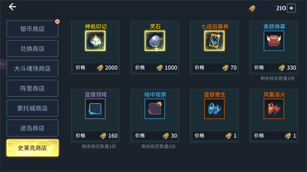 可以在商店购买神祇印记和灵石,也是游戏里目前最重要的材料之一。所以荣耀魂师大赛一定要记得参加,拿不到排名的奖励基础奖励也是非常重要的。