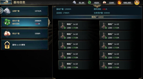 一切从零开始,这就是指挥官在进入这款游戏中遇到的第一个问题,还好有助手帮助我们,在助手的解说下我们明白,要扩建基地需要很多物资,其中燃料这一资源是非常重要的,不论是维护建筑物还是维持部队数量,都需要消耗这一资源,指挥官可以通过精炼厂来开采燃料,或者在星图中派遣部队开采存在这一物资的星球,总之想要玩好这一款游戏那么燃料一定是必不可少的。