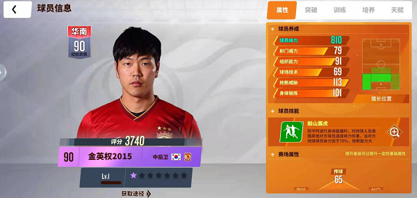 最后一位,金英权。作为华南地区又一位外援,金英权的这张紫卡受到了众多华南玩家的吐槽。确实,整个华南地区只有郑智和郜林两位内援,这次又是个外援,确实让人不爽。但是惊喜在于金英权可以踢左边后卫,我特意百度了一下,金英权确实踢过左边后卫这个位置。至此,游戏中终于有了紫卡边后卫,而且一来就是两张,孙祥和金英权。