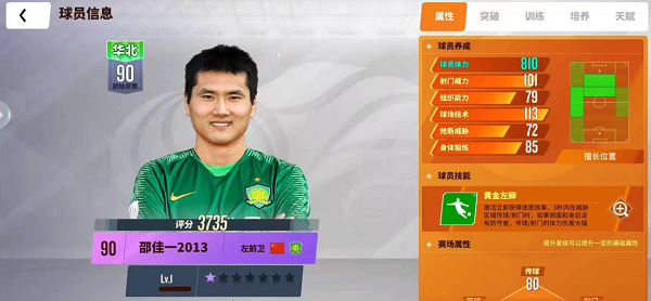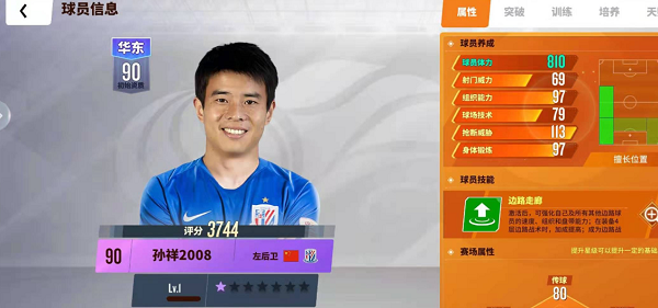 下面我们看一看孙祥的技能,边路走廊。从描述上看,为全队的边路球员提供加成,貌似很厉害的样子。如果是这样的效果,那一定要使用4后卫阵型,同时配有两个边前卫或者两个边锋,这样才会享受到加成的最大化。