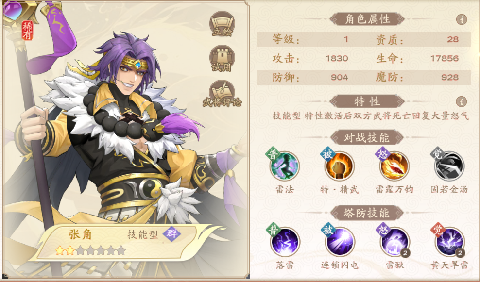 张角法输出综合表现优异,爆发高,范围大,贾诩觉醒技集中伤害最高,王异怒气技大范围混合伤害,觉醒技高额法爆。