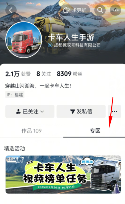 参与方式:抖音搜索“卡车人生手游”,进入游戏主页-专区,即可找到该活动