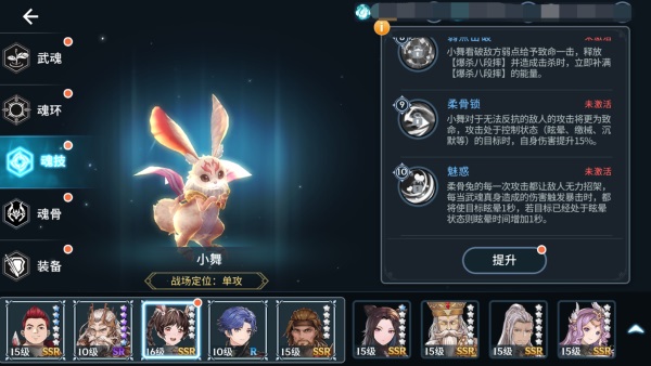 另外小舞姐在解锁了魅惑技能后,武魂真身状态下暴击则会有额外的眩晕效果,搭配上小舞姐自己的暴击光环。让小舞姐彻底变成一个单体极限控制的角色。
