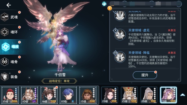 总的来说,单攻魂师的选择比较多,几乎没有无用的存在,千道流,小舞,尘心,比比东,都是个顶个的好手,但是强烈建议抽到千仞雪后极限培养,尤其注意提升暴击率,让她能够快速触发天使领域.降临~大家赶快去抽卡,和天使之神一起并肩作战吧!