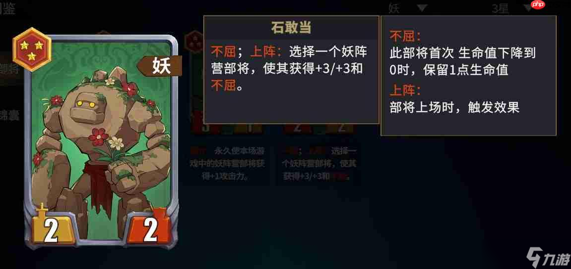 前期过渡:虎先锋的增益效果为临时性,红孩儿的成长性平平,而石敢当是唯一能永久提供【不屈】的卡牌,后期必拿(除非不屈已满)。