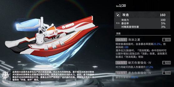 1、先从主动技能来上看,【泡沫尾翼】对前方会造成大范围的伤害,而且配合专武还会发出[泡影]状态,清理前期的小怪物们,还是得心应手的。更有【浪涛切割】远程模式和近战模式来收尾血,效果杠杠的,潴潴强烈推荐!大招上【碧蓝曼舞】更是可以在机体周围造成超高的范围伤害,还可以让命中的敌人,进入[泡影]状态,从而提升整体伤害,变革3后更能冻结5秒!对boss大佬,那叫一个绝绝子呢!!