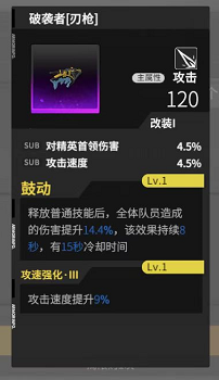 在没有专武的情况下,潴潴不很是推荐使用其他的SSR色武器,可以使用SR武器过渡,比如说【破袭者】,使用普通技能不光可以提升全体队员的攻击,强化后还会提升攻速,还是相当有用滴。