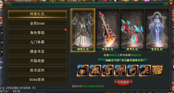 在开服第1天-开服第7天,当天消费一定额度的元宝即可获得各种特惠礼包。