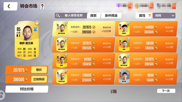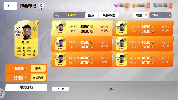 上面这张图很有意思,明明是同样的球员,价格却有所不同。造成这种情况,是因为出售球员的玩家对球员的培养程度不同。有的玩家一获得某名球员,觉得自己用不上就直接放到转会市场;有的玩家则是在对球员进行了一番培养(比如突破)之后又获得了同位置更好的球员,忍痛将其卖掉。所以同名球员的身价也会有高低之分。