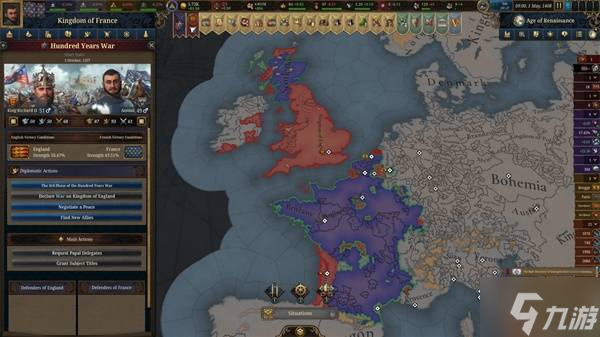 谈判出一场不安定的和平局面。运用外交在各国巩固您的王朝势力,或打造一支所向披靡的同盟。但要记住,国家没有永久的朋友,只有永久的利益,因此要妥善运用您的大使。获得盟友的帮助、向敌人发出威胁,并密切注意所有敌友的状况。