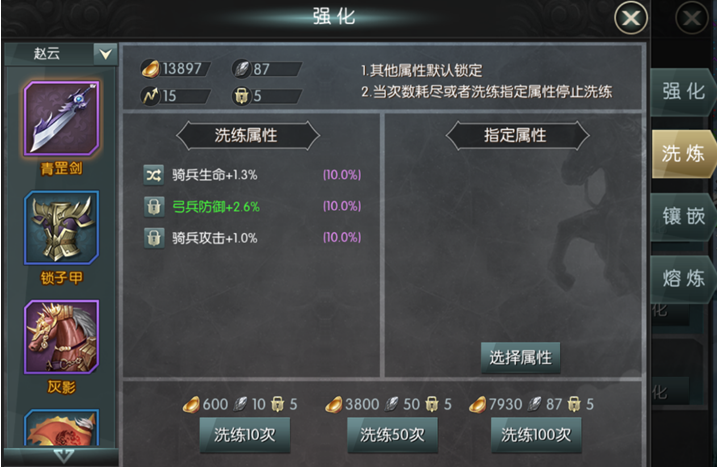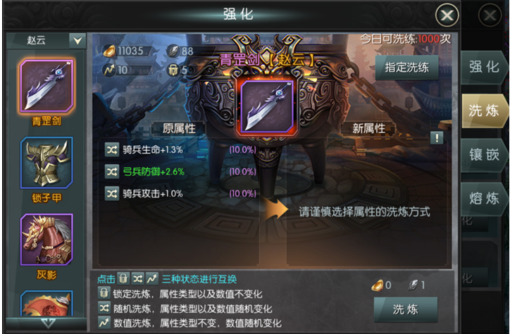洗炼到想要的属性可以进行替换属性或者继续洗炼到想要的属性为止