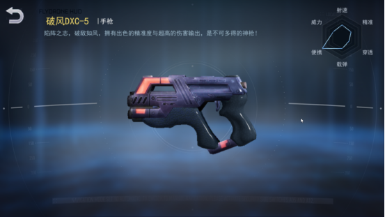 第三个是破风DXC-5,与其他手枪相比拥有较高的精准度以及不俗的伤害。