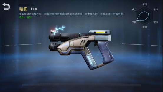 第二个是暗影,炫酷的外形以及极高的便携度,并且拥有增伤特性,在关卡与BOSS挑战中属于越战越勇的类型。