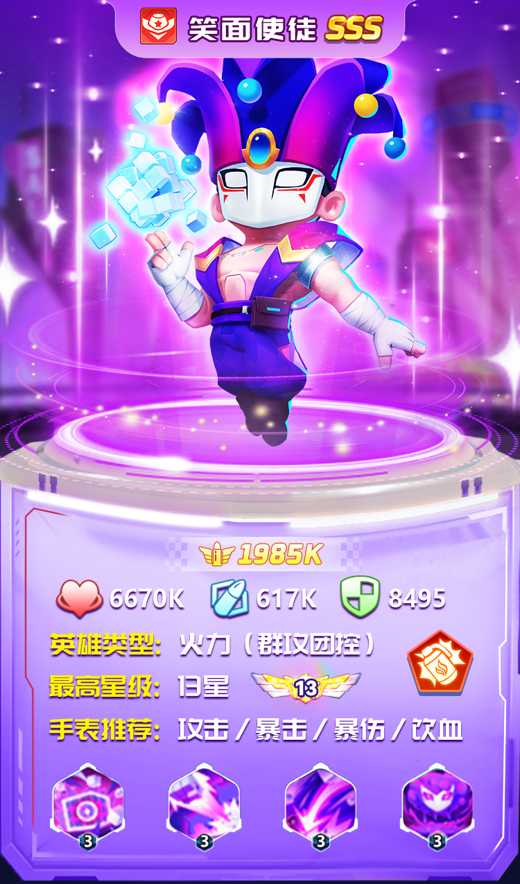 综合评价 当前版本与所有英雄适配性最高的输出英雄,拥有强力的范围伤害技能,更能通过技能聚集敌人,让其他英雄更轻松的集中输出,达成群体伤害最大化。由于自身面板攻击数值较高,处于后排时比较容易遭受切后排的单点伤害,无论是击退技能或黑洞吸引的方式都能更好的提升自身的生存能力。目前所有的英雄里面,能够做到这个效果的控制英雄有且只有笑面使徒,想要增强队伍综合竞争力的指挥官不妨考虑入手。