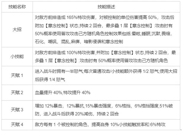 怒海狂鲨是水系SSR精灵,定位为意念控制专家。其大招能对前排敌方造成高额特攻伤害,且当敌人处于控制状态时伤害更高,附加的【意念控制】状态使受影响敌人有几率攻击己方单位。小技能也能对前排敌人施加【意念控制】。怒海狂鲨的天赋加强其初始怒气和怒气获取,提升生存能力和特攻值。额外的天赋提高其对受控制敌人的伤害表现,并随着敌方被控制角色数量增加而增强自身能力。这些特性共同使得怒海狂鲨成为控场高手,并在混乱中造成重大威胁。