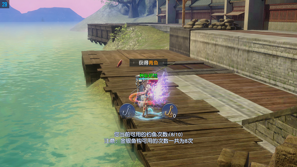 潇潇雨歇,当在一场异常艰难的战斗中获得胜利之后,难免想休息一下,远离这纷扰的江湖。独立寒江,怎么能少了一柄金色吊杆呢。那么它来了!《怒战红颜》的世界中,独特的休闲玩法,只要玩家持有金色或者银色的吊钩,即可进行活动。吊获的鱼可进行出售获取银币,没钱的时候钓钓鱼,实在是轻松写意。