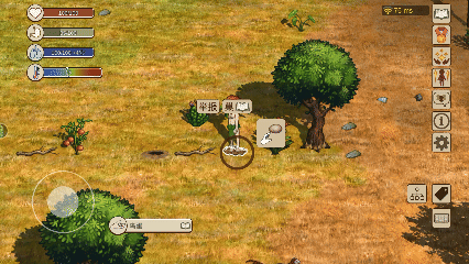新手村民刚开始可以通过采集获取生存点数,以此解锁第一个实用工具——燧石刀刃