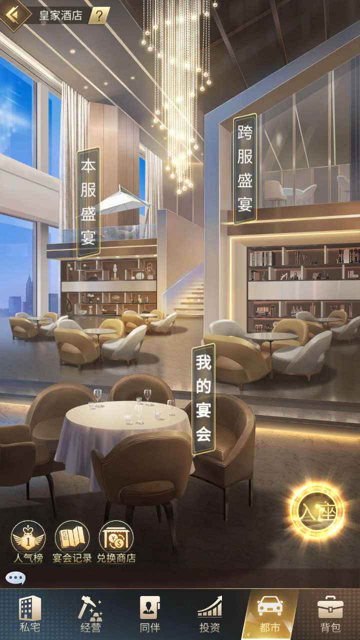 1.赴他人宴会需要赠礼,赠礼档次越高,获得的积分和人气越高。