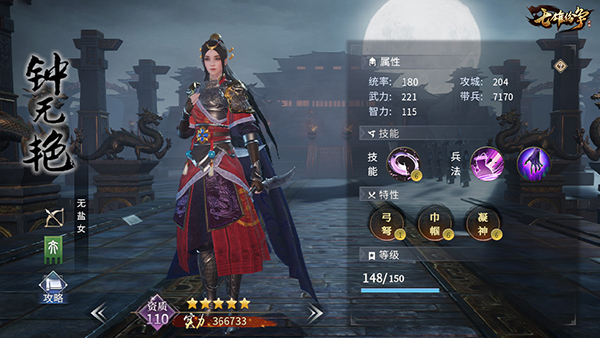 除了背景够细致,游戏的武将立绘还是live2D的,随着人物的呼吸起伏,从衣摆到头发都会飘动,初始武将钟无艳上来还表演了一套挥刀的动作,这就有点帅了,毕竟美丽的木头人千篇一律,有趣的武将万里挑一。