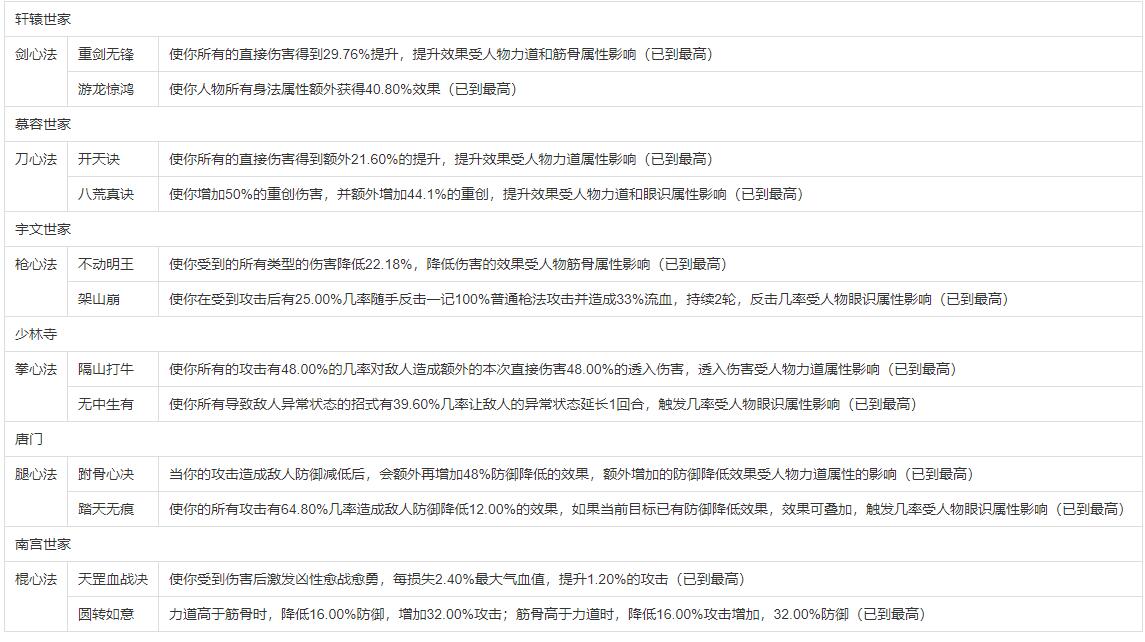 心法在以下门派的练武场中找相应npc学习,效果如图