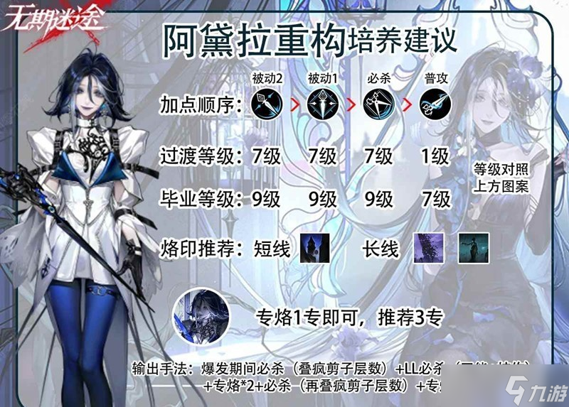 技能先被动2提升爆伤,再升被动1提升暴击,最后提升大招倍率,烙印短线依旧是钟楼,长线则推荐高塔审判,自身技能+锚点+烙印已经能做到92%暴击,配合耶莱娜就能做到常驻100%暴击