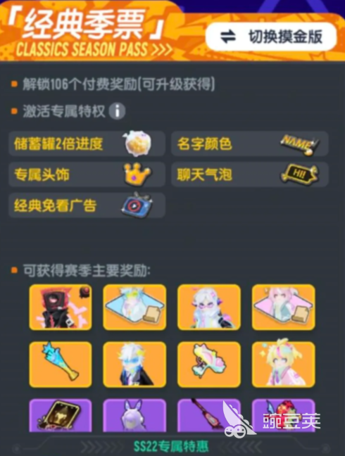 大家购入的是经典季票的话,那么可以获取到储蓄罐2倍进度,以及专属头饰,名字颜色,聊天气泡等奖励。除此以外还有着角色套装等奖励,这次的套装从目前来看整体还是非常可爱的。