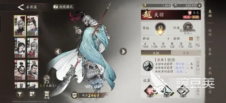 核心技能1:单体150%的倍率,高伤害技能,击杀敌军能减2轮CD,升阶后改技能杀敌,如果拥有2层武魂,能直接重置冷却,未击杀也能获得缴械效果,让敌人无法普攻,满级后还会根据战前移动提升最高15%伤害。第二个核心技是它的被动,附近没其他人就能增加攻防,武魂2层时效果翻倍,升级后可增加额外法术见面,且获得战前3格移动,外加增伤效果。同时该武将还有个军势效果,在上阵3个红色属性武将,能获得全属性提升,特殊效果为攻击满血敌军增伤。