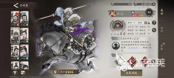 张辽是经过改版的,虽然输出相比之前低了一些,但是依然可以靠操作打出不俗的输出,前期自带无视阻挡可随时出发合击,后期拥有“当锋摧绝”战力更高,全新的骑兵阵眼,自带移动加成,攻辅兼备的武将,非常强大。被动“勇者夺前”,移动时无视敌军阻挡,对经过的敌人造成物攻20%的固定伤害,并施加2层持续1轮的“撕裂”。核心技“全军出击”,为范围内己方部队施加“破军”和“疾行”。