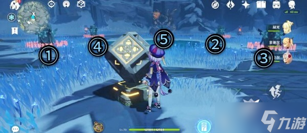 从传送点出发,进入一个圆形战斗平台,开启机关,需按照温暖仙灵经过的顺序激活冰元素机关,并消灭苏醒的遗迹守卫与遗迹重机;