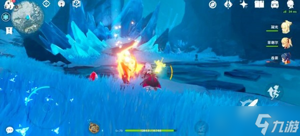 在碎片周围分布着4个深赤之石,需要我们逐一采集破除坚冰,注意了丘丘霜铠王身后可是有一块哦;