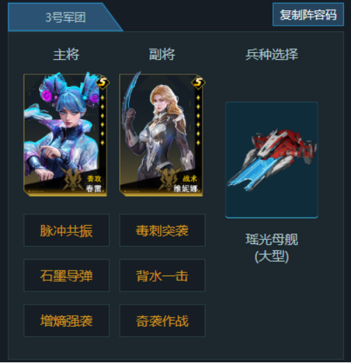 另外,群星助手小程序支持使用阵容码了,文中所有配队均提供阵容码,指挥官可以直接复制阵容码在游戏内按照招募界面-阵容推荐-导入阵容码-应用阵容的操作路径,轻松完成配队。
