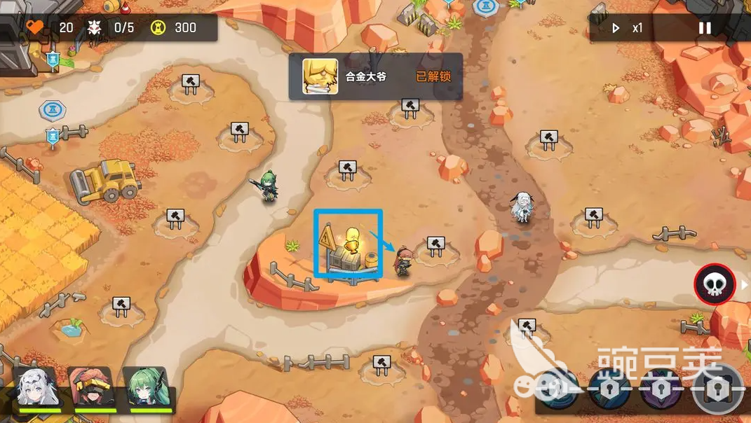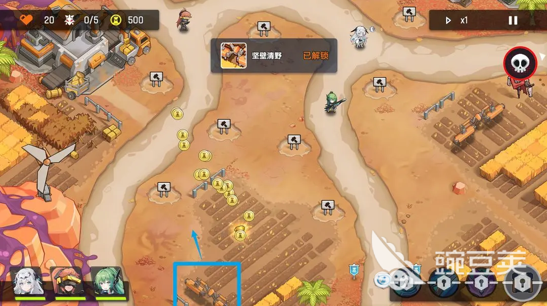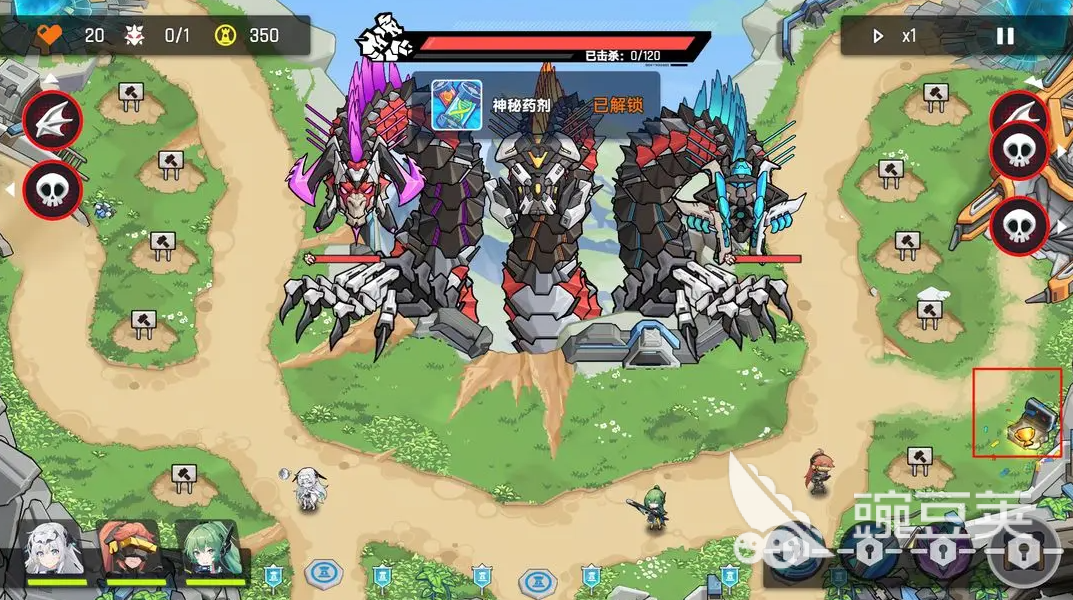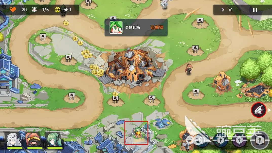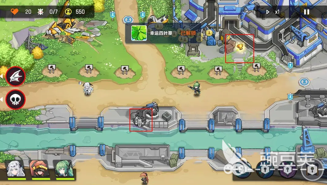1-12关的合金老头被三个箱子挡住,点击解锁后会跟随最近的单位,建议拉肉盾单位后再触发。