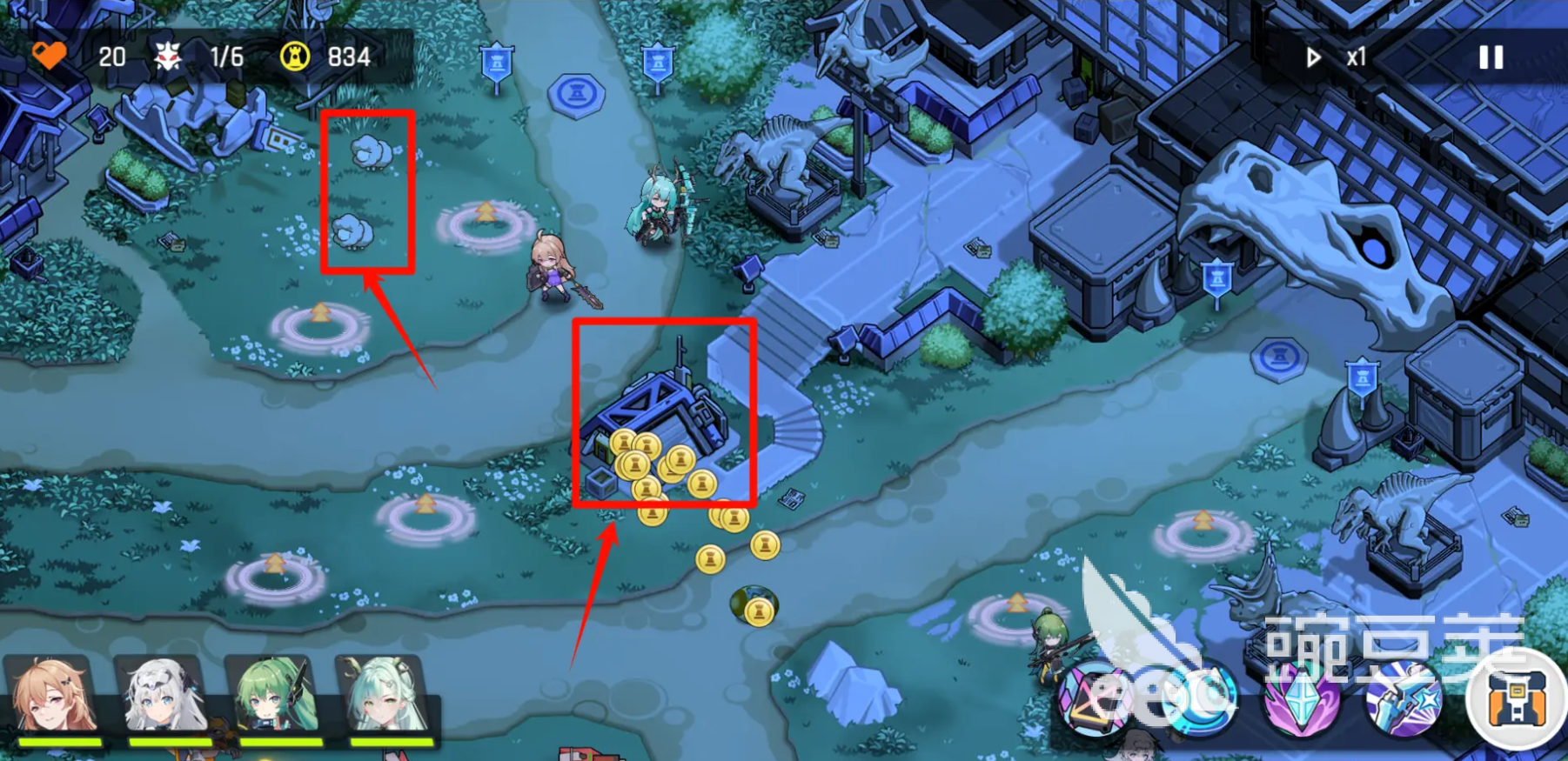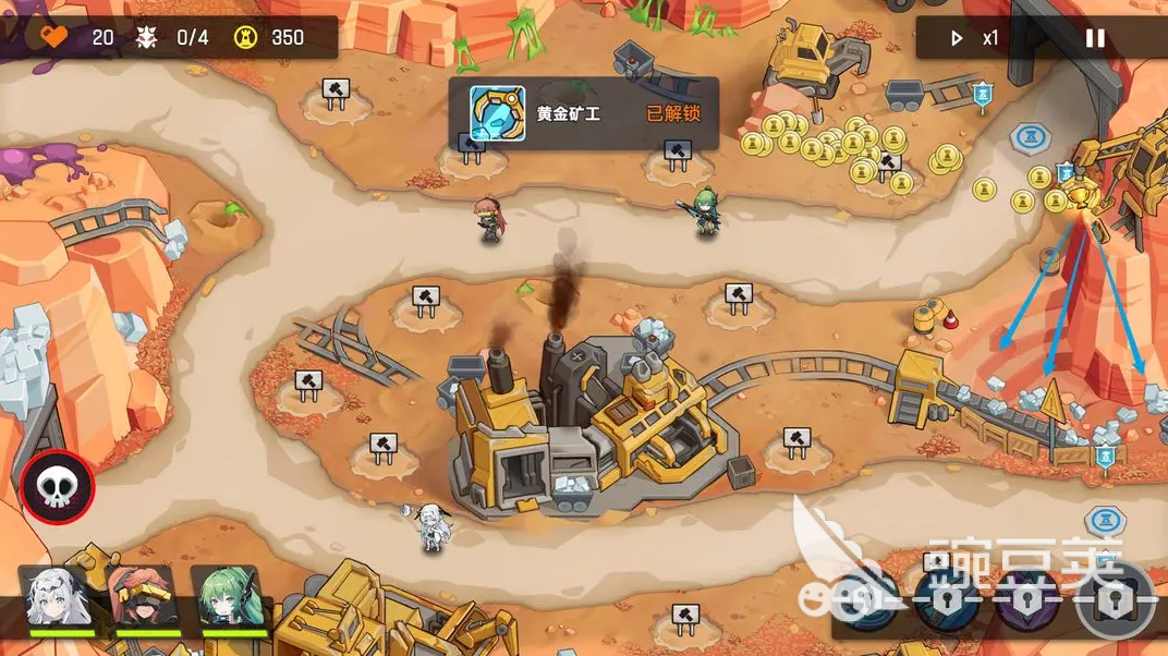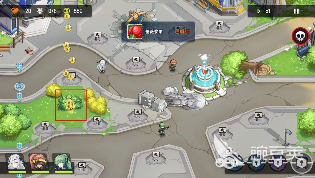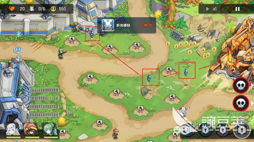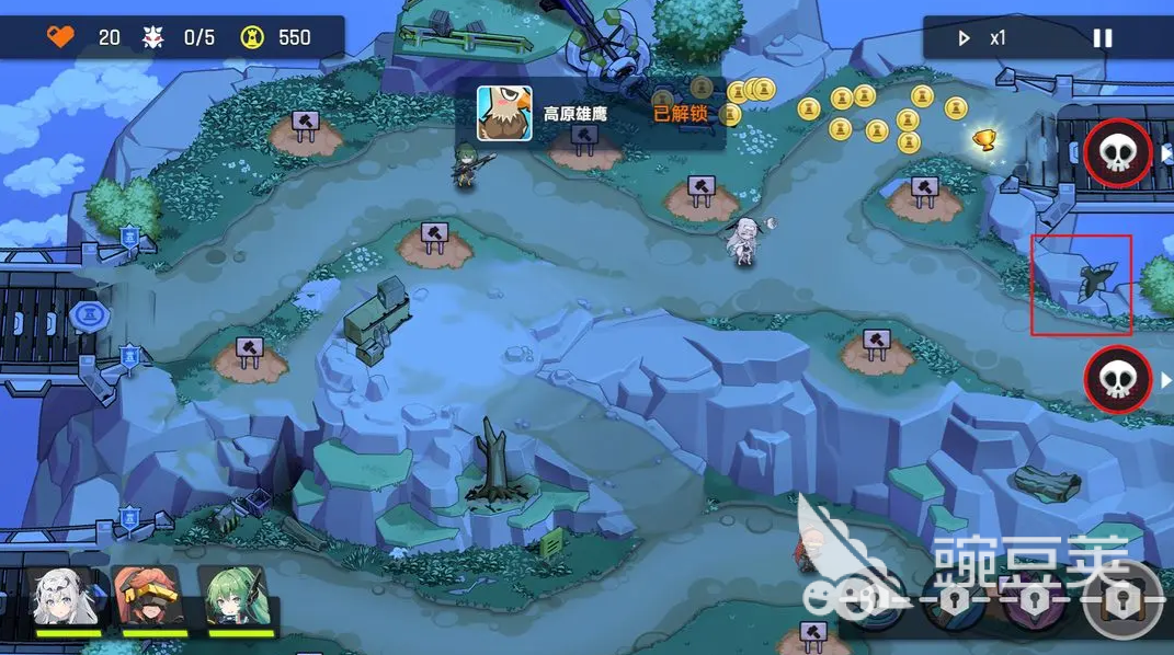 1-12关的合金老头被三个箱子挡住,点击解锁后会跟随最近的单位,建议拉肉盾单位后再触发。