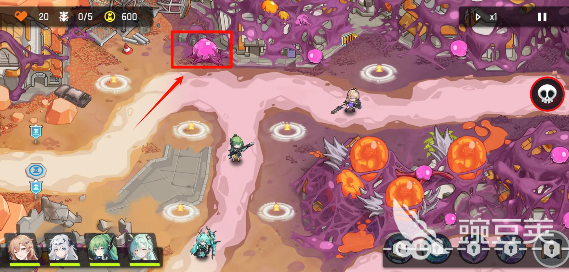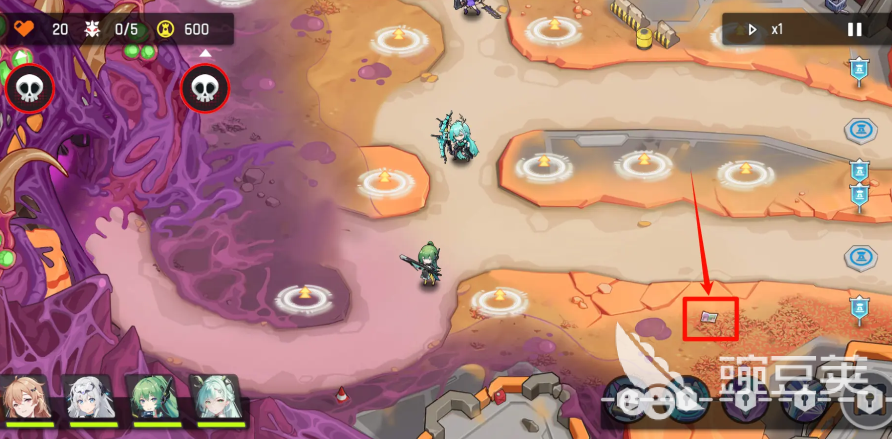2-7关的右上角位置在第三波后可以回血,为战斗提供便利。