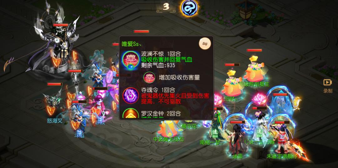 在第6层关卡中,怪物侧拥有击杀目标附加3回合死亡禁锢的特性。搭配上阎王的夺魂令集火,我方人物单位很容易被集火秒杀。