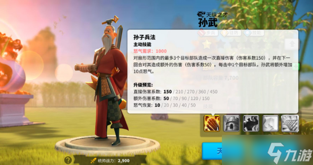 孙武本身是个非常实用的紫将,觉醒后强度更高。他的技能万世兵书能对扇形区域内最多五个目标造成高额伤害,并且每命中一个目标还能回复怒气,让技能释放更频繁。搭配减伤和步兵生命加成,孙武在团战和驻防中都有出色表现。所以即使有多余的头像,也别忘了优先把他觉醒,这对你的战力提升帮助很大。