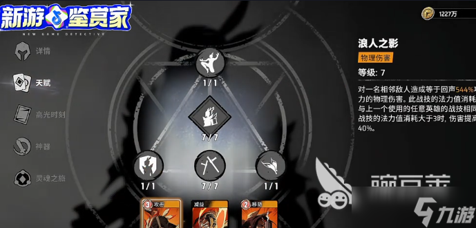 浪人之影这是第1个技能,在释放之后就可以针对相邻的敌人形成物理性的伤害。而且法力值消耗和上面所使用的英雄技能是一样的,如果消耗大于3,还可以有效提高伤害,在针对单体敌人时也可以形成物理性伤害,很快就可以叠加回身震震,这一个效果就可以持续10秒的时间,虽然并不是很长,但还是蛮有优势性的。拟态防御天赋技能也比较实用,一旦在释放之后,那角色受到的伤害在10秒时间内也可以降低20%。