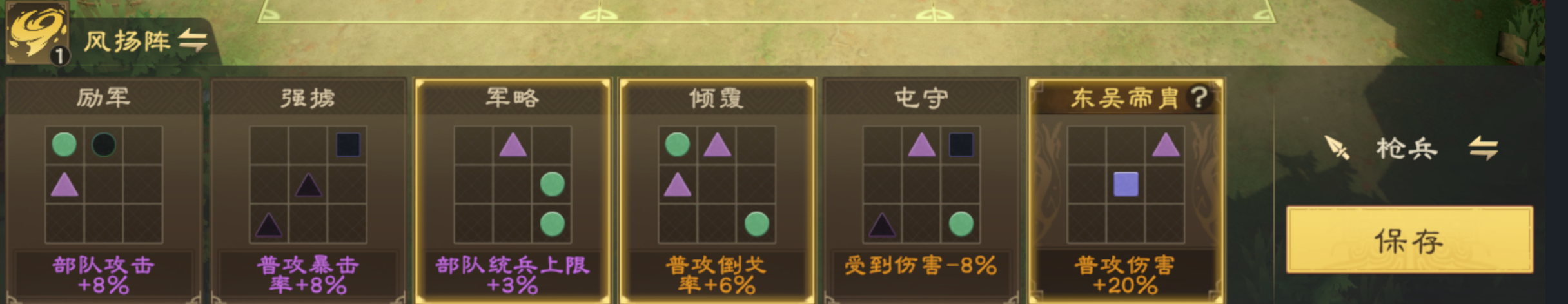 接下来,可以将对应的士兵编队布置到阵法的九宫格中。